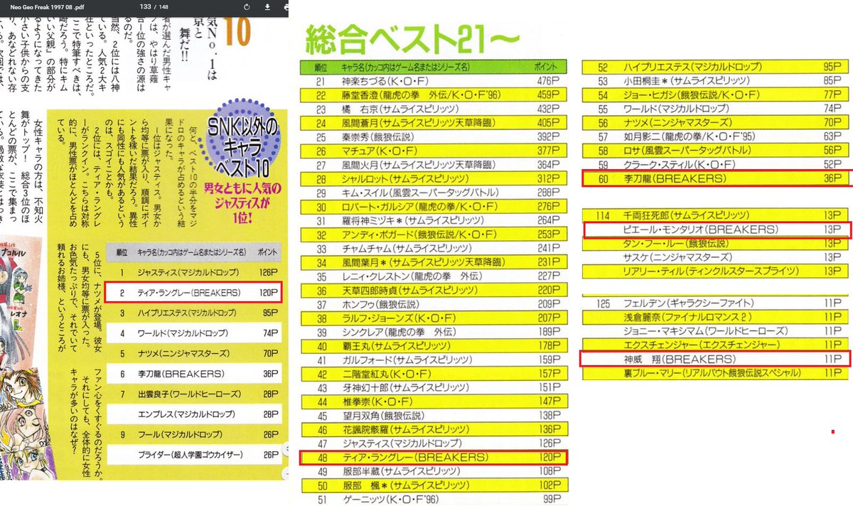 ブレイカーズリベンジキャラランキングのはなし 徳島ゲーセンリバース ノーサイドの部屋