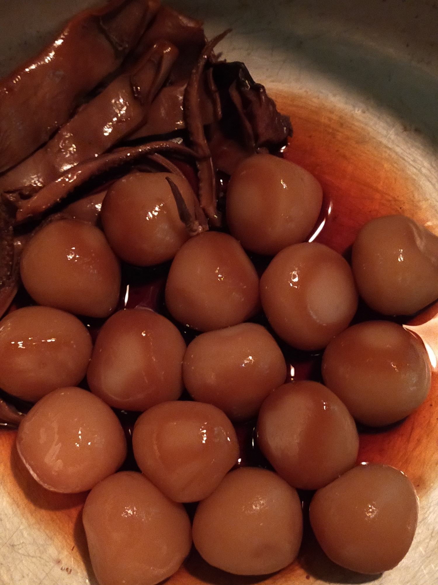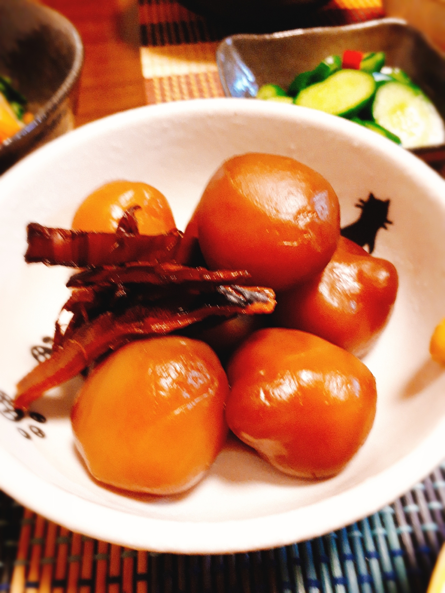 玉コンニャクを湯がく。 鍋に調味料Aを入れ煮立たせ、湯がいた玉コンニャクを熱いうちに手早く加え色づけする。 2に水、ウズラ卵を加え、30分程煮含める。 コンニャクが熱いうちに、ふつふつ沸かした調味料の中で手早く炒めるように煮れば味の浸かりも早くなる。 ( 5人分 ) 玉コンニャク 480g ウズラ卵 24個(ゆでたもの) A ・しょうゆ 大さじ5 ・するめ g ・昆布 1枚(8cm) ・酒 大さレシピあたりめの旨味たっぷり味しみ玉こんにゃく :13件 :7件 のんすけ さん *お越しくださりありがとうございます* すぐマネできるオシャレシピ 作り置きや献立などを紹介し ブログ記事を読む>> 調理時間: 5〜15分 人数: 4人分 関連キーワード こんにゃく イカ スルメ 生姜 鍋 玉こんにゃく 蒟蒻 いか あたりめ 煮物 おつまみ (ID b) UP! 玉こんにゃくは隠し味にスルメやアタリメを入れて煮込み、観光地などでは串に刺して提供されることが多い山形県の名物です。軟らかい食感の「いか塩辛 塩辛職人」を使用することで、味にコクが加わります。 このレシピに使用した商品